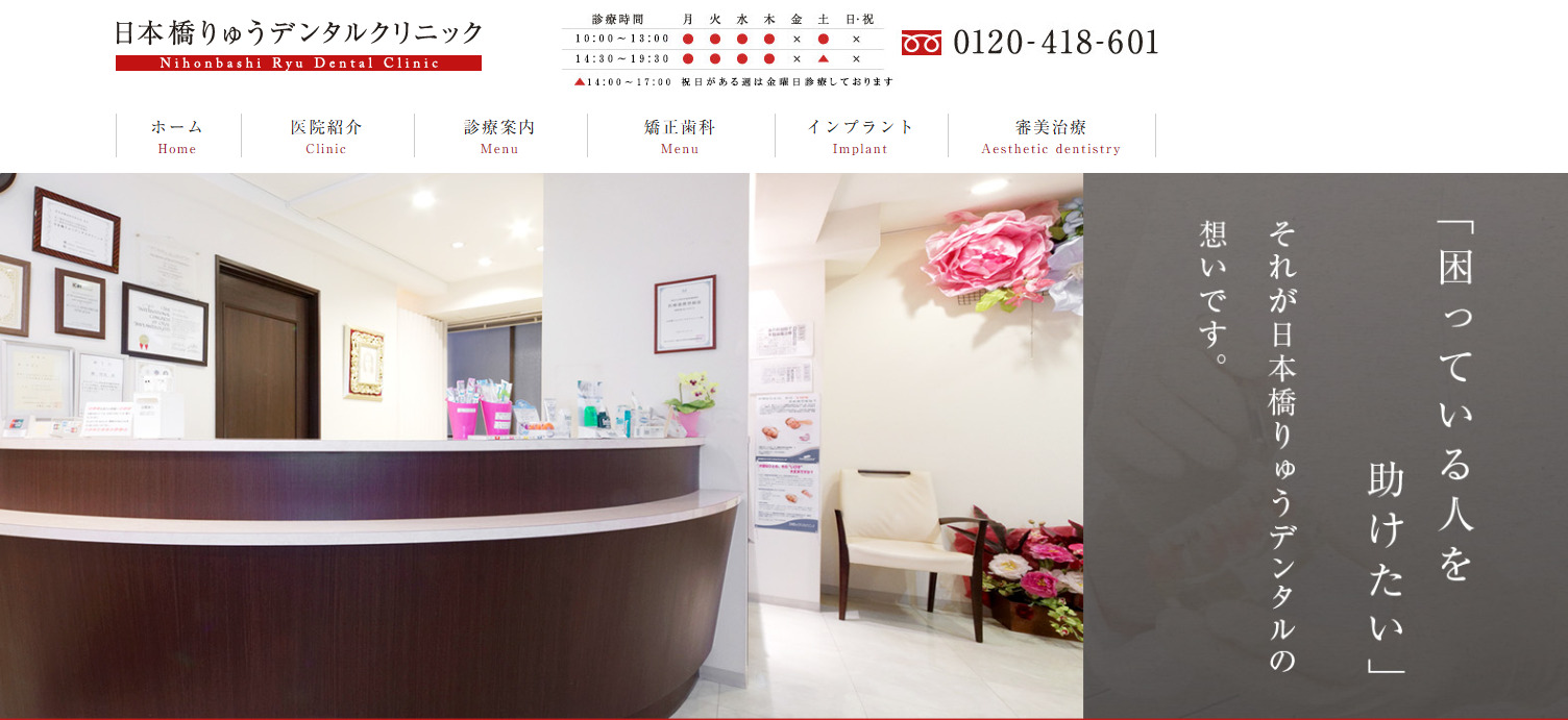 「日本橋りゅうデンタルクリニック」は平日でも19時半まで診療に対応しており、土曜日の診療も可能です。
