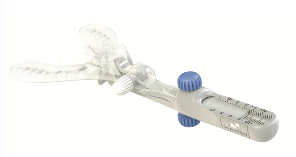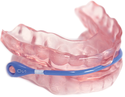 ソムノデントは、就寝時に装着するマウスピース型の装置で、下あごを前方に誘導することで、気道を確保します。主に、いびきや軽度から中等度の睡眠時無呼吸症候群(OSA)の治療に用いられます。装置は患者さん一人ひとりのお口に合わせて製作され、歯科医師の管理のもとで使用します。